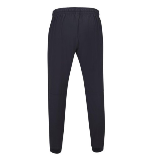 Męskie spodnie tenisowe o klasycznej, prostej nogawce zakończone mankietem świetnie dopasowują się do kształtu sylwetki. Wykonane z materiału, który dobrze odprowadza wilgoć z dala od skóry. Materiał jest łatwy w praniu i szybkoschnący. Płaskie szwy nie powodują otarć i podrażnień. Dłuższe zamki przy nogawkach ułatwiają wkładanie i zdejmowanie spodni. Elastyczny ściągacz ze sznurkiem w pasie dla odpowiedniego dopasowania do kształtu sylwetki, boczne kieszenie bez zamków na różne akcesoria. Logo producenta z przodu na nogawce.