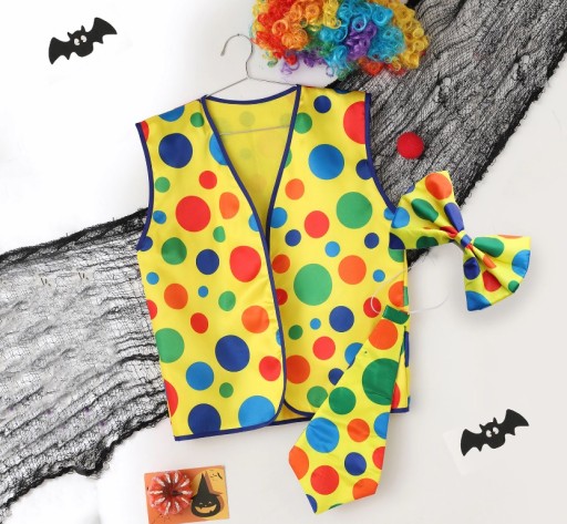 ⭐ Zestaw składa się z: kamizelki, krawata, muchy, peruki oraz czerwonego nosa,