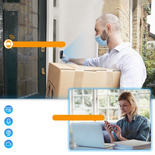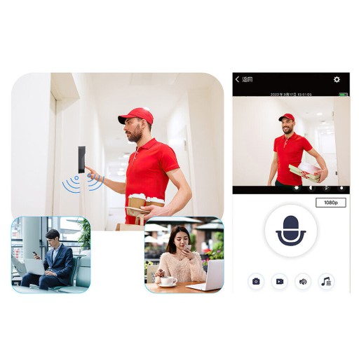 🔔🔔 Połączenie wideo: Wbudowany dwukierunkowy mikrofon, gdy ktoś zadzwoni do drzwi, powiadomienie push zostanie wysłane na telefon komórkowy, a właściciel może wejść do interfejsu połączenia telefonu komórkowego. Możesz sprawdzić i porozmawiać z gościem w dowolnym miejscu i czasie.