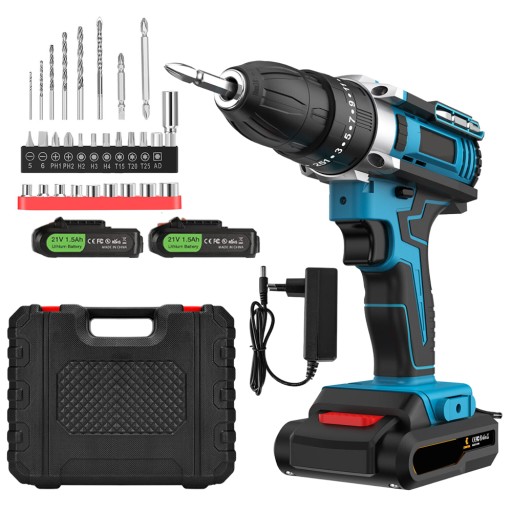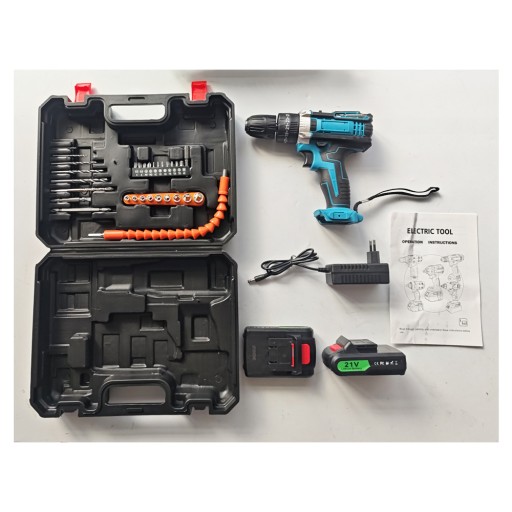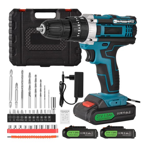 💥 Wkrętarka akumulatorowa Wiertarka udarowa Zestaw wierteł płaskich 21+3 Moment obrotowy z oświetleniem LED, 2-biegowy przełącznik ❗❗❗