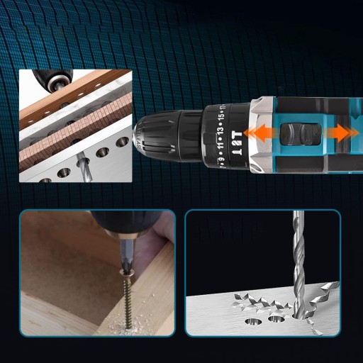 ➕ Wkrętarka akumulatorowa może być regulowana w 2 różnych zakresach prędkości, niska prędkość (0-400 obr./min) to wyższy moment obrotowy, odpowiednia do wiercenia lub wkręcania niektórych twardych materiałów.