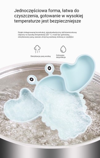 Talerz przybrał formę kraba – będzie on towarzyszył maluchowi podczas posiłku oraz będzie zachęcał do skończenia nałożonego jedzenia.