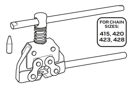 Przyrząd do rozkuwania łańcuchów motocyklowych, rozmiary łańcucha: 415, 420, 423, 428;