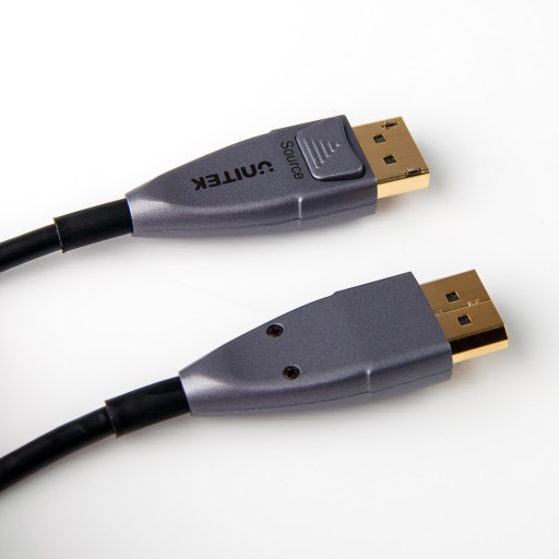 Światłowód to najbardziej zaawansowany sposób przesyłania danych, który nie wchodzi w reakcję z innymi instalacjami (brak promieniowania elektromagnetycznego) i nie generuje zakłóceń i opóźnień nawet przy długości kilkudziesięciu metrów Dlatego aktywne optyczne kable DisplayPort 1.4 to najlepsze rozwiązanie przy profesjonalnych zastosowaniach w dużych systemach audio-video, także na dworze.