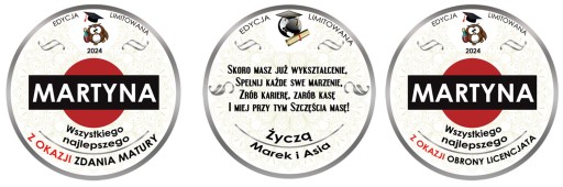 Personalizowana Etykieta z gratulacjami z okazji zdania Matury lub dla absolwenta szkoły wyższej