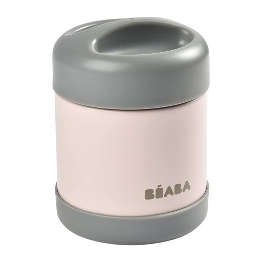 BÉABA - Izolowany pojemnik termiczny na posiłki - dla niemowląt i dzieci - 100% szczelny - stal nierdzewna - utrzymuje temperaturę ponad 5 godzin - podwójne ścianki - 300 ml - szary/różowy.