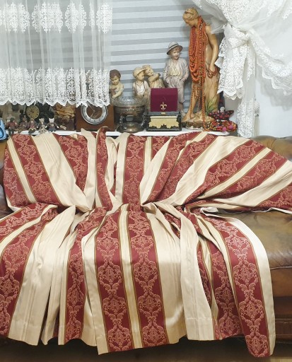 DOM W LIKWIDACJI-PAŁACOWE ZASŁONY PRZEPIĘNY WZÓR I KOLORY OZDOBIĄ ZARÓWNO WNĘTRZE SALONOWE JAK I SYPIALNIANE. POLECAM STAN JAK NOWE WYMIARY WYSOKOŚĆ 160 CM + ZAŁOŻENIE 7 CM, SZER. 139 CM ( W KOMPLECIE 2 SZTUKI ZASŁON.