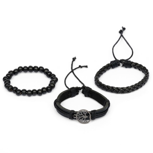 6x Bransoletka Skórzana Męska Elegancka Koraliki Rzemyk Komplet Zestaw MEN