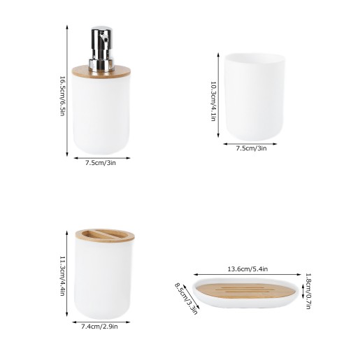 1. Idealny zestaw akcesoriów do kąpieli, który obejmuje uchwyt na szczoteczkę do zębów, mydelniczkę, dozownik balsamu i kubek do płukania ust, może w pełni zaspokoić twoje potrzeby związane z myciem.
