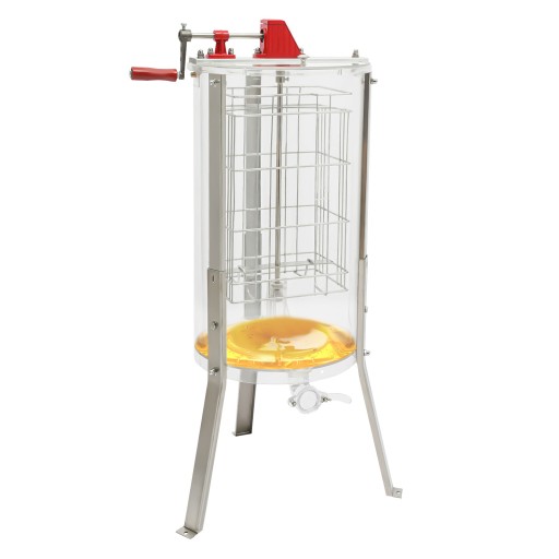 Przemyślany design: Szeroki zawór miodu ułatwia usunięcie większości miodu z ekstraktora bez przewracania ekstraktora do przodu i z mniejszym hałasem.