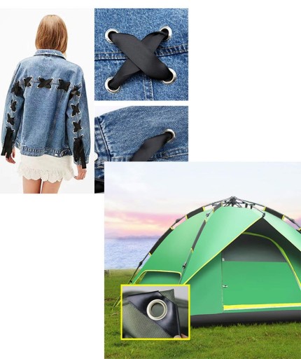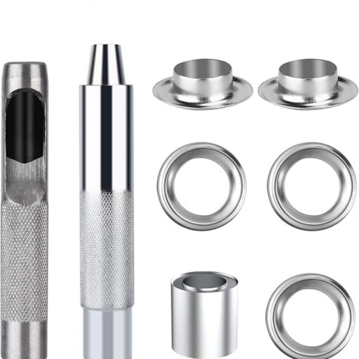 - Narzędzie do majsterkowania: Zestaw przelotek zapewnia ekonomiczne rozwiązanie do naprawy płótna, plandek, namiotów, markiz, przykryć basenowych itp.; Oczka przelotek można łatwiej ustawić na miejscu za pomocą wycinaka do otworów i trzpienia.