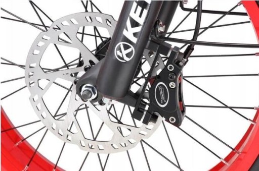 Rower elektryczny z grubymi oponami 20"*4,0" zapewnia doskonałą przyczepność i antypoślizgowość na nierównych drogach, z regulowanym, blokowanym amortyzowanym widelcem, który zmniejszy nierówności, zapewniając wygodniejszą i płynniejszą jazdę.