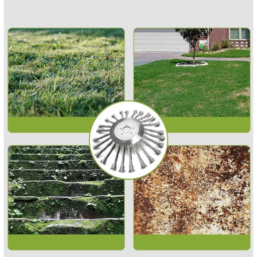 🍀 Ulepszony rozmiar - szczotka do podkaszarki do trawy zapewnia większą powierzchnię pokrycia i większą wydajność roboczą dzięki zaktualizowanej okrągłej głowicy stalowej o średnicy 254 mm. Skutecznie usuwa chwasty, mech i dzikie zioła, łącznie z korzeniami, zapewniając dokładne czyszczenie.