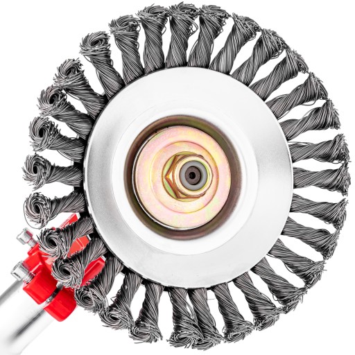 Tarcza szczotkowa z wysokiej jakości stali odpornej na obciążenia siły odśrodkowej oraz bardzo wysokie obroty dochodzące nawet do 10tys/min. Może być stosowana bezpośrednio do urządzeń typu kosa, lub podkaszarka, zarówno spalinowych jak i elektrycznych.