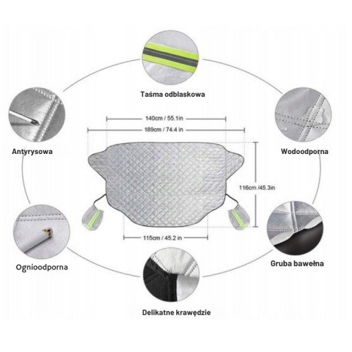 - Osłona nadaje się na każdą porę roku, w zimie świetnie ochroni Twoją szybę przed zmarzniętym śniegiem. W lecie temperatura w środku będzie znacznie niższa.