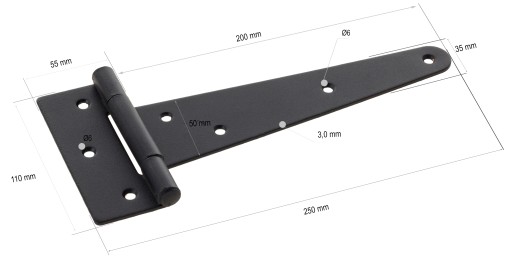 - Wymiary 250x110 mm (pozostałe wymiary na rysunku poniżej)