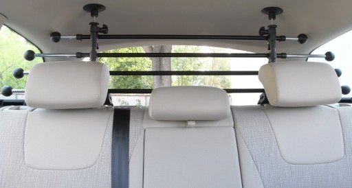 Bariera nadaje się szczególnie do przewożenia psa lub różnych ładunków Montaż jest bardzo prosty i zapewnia dopasowanie do różnych kształtów i wymiarów bagażników pojazdów bez użycia narzędzi Mocowany do zagłówków tylnych siedzeń Barierki można ustawić na szerokość 84 - 148 cm, wysokość całkowitą 30 - 55 cm, ale także rozstaw poszczególnych prętów Między innymi można ustawić nachylenie kratki.