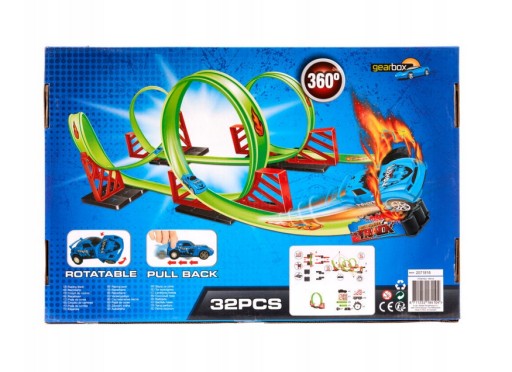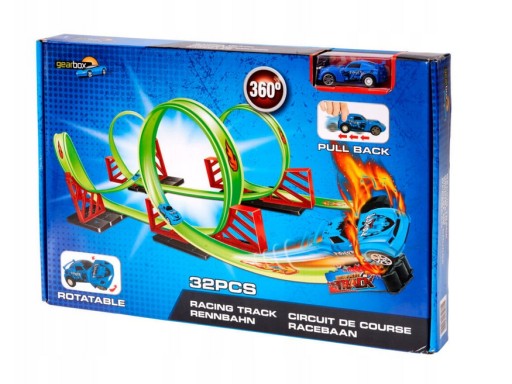 Ten tor samochodowy składa się z kilku pętli i zapewnia rozrywkę na długie godziny! Dołączony samochód z możliwością obrotu szybko przemierza tor wyścigowy.