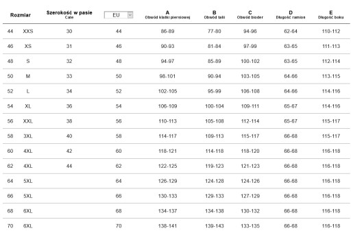 *Tabela rozmiarów jest poglądowa nie może stanowić podstawy do reklamacji.