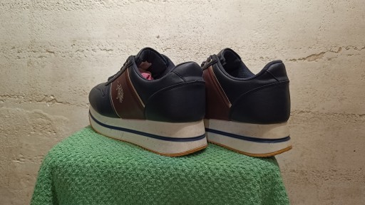 Mam do sprzedania oryginalne creepersy na platformie do codziennego użytku firmy U.S. POLO ASSN. w kolorze granatowym ze złotymi dodatkami. Buty w bardzo dobrym stanie widocznym na zdjęciach (real foto)