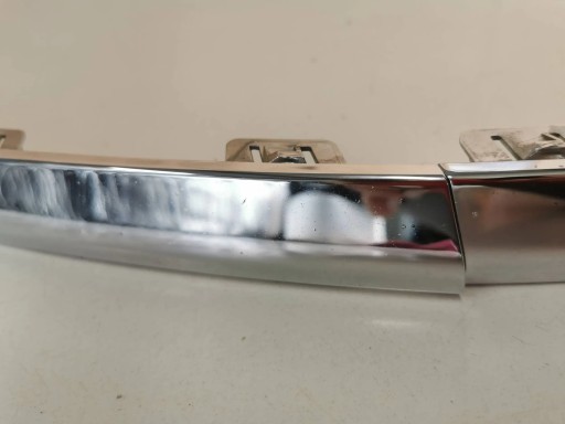 Przedmiotem sprzedaży jest prawa i środkowa listwa zderzaka przedniego do Volvo V90/S90, model po liftingu. Chrom używany, oryginalny, w stanie widocznym na zdjęciach (uszkodzony). Możliwy odbiór na giełdach samochodowych: Poznań, Lubin. Więcej znajduje się na dole oferty.