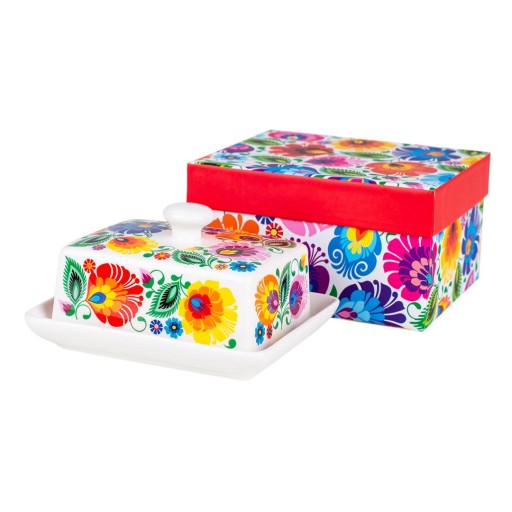 Maselnica Mariola - kaszubska to niezbędny dodatek do Twojej folk kolekcji ceramiki. Wykonana z ceramiki, ozdobiona najpiękniejszymi wzorami ludowymi - świetnie odnajdzie się na Twoim stole.