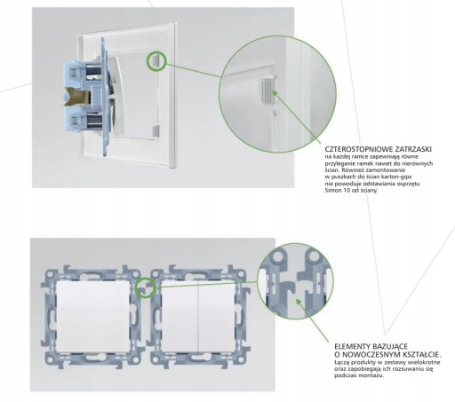- Unikanie mieszania serii: Nie wolno łączyć produktów z różnych serii, np. produkt z serii Simon 10 nie będzie pasował do ramki z serii Simon 54.