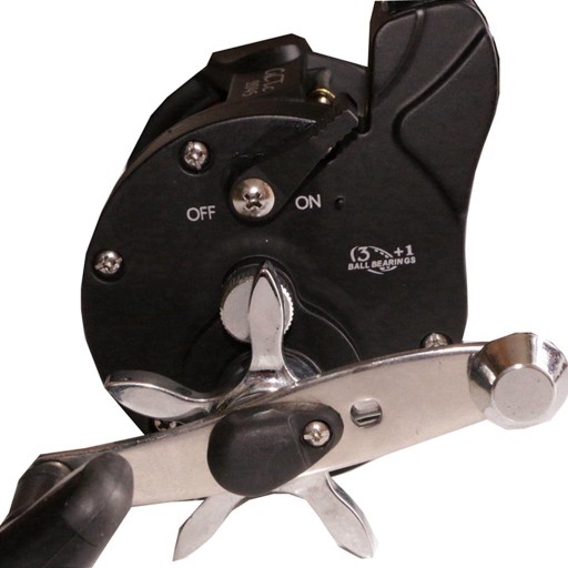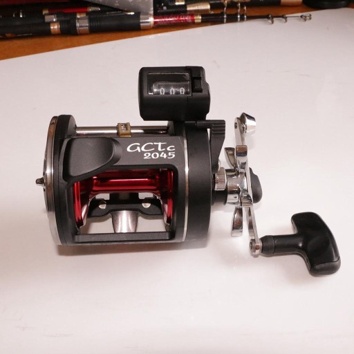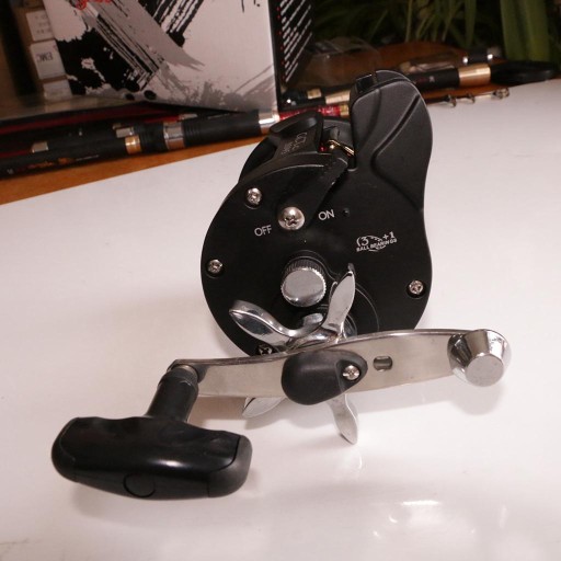 Mocny kołowrotek wędkarski, odpowiedni do połowu dużych ryb w głębokim morzu.