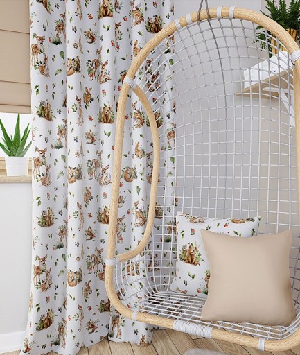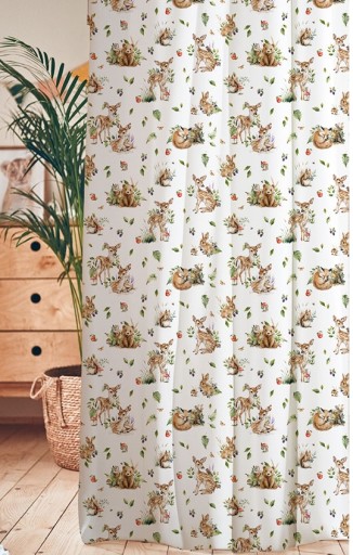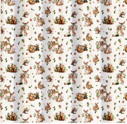 Ładnie układające się zasłony z tkaniny dekoracyjnej milas, miekiej, plastycznej podobnej do weluru z nadrukiem lesnych zwierzatek
