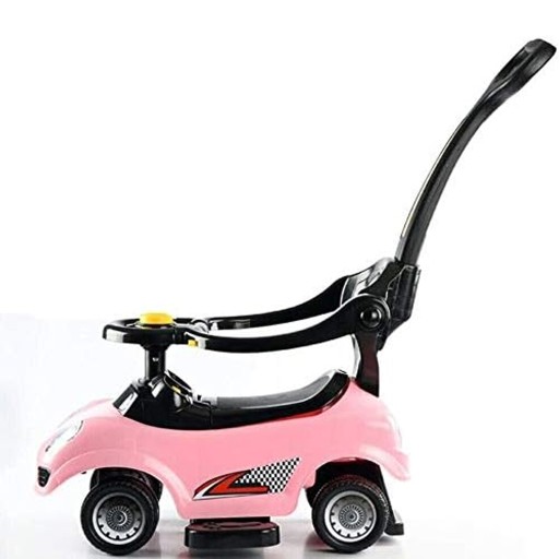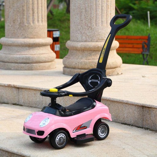 Jeździk w kolorze RÓŻOWYM z rączką przeznaczony dla maluchów powyżej pierwszego roku życia.