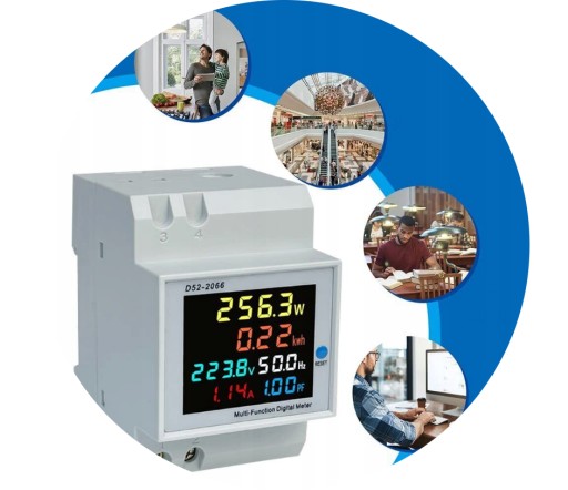 CYFROWY MIERNIK ENERGII ELEKTRYCZNEJ 6 W 1 LCD NA SZYNĘ DIN, D52-2066, 100A
