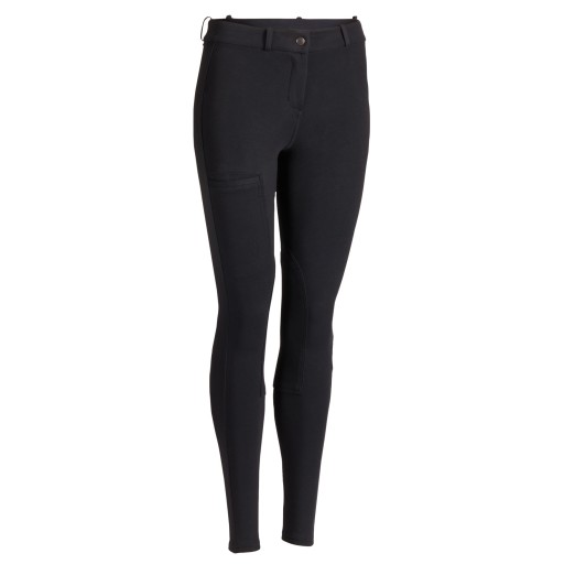Do jazdy konnej. Sprawdzą się doskonale niezależnie od pogody. Bardzo elastyczne bryczesy 100 są przyjemne w dotyku. Idealne spodnie dla początkujących! Praktyczna kieszeń na udzie.