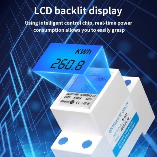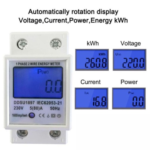 - Licznik energii może mierzyć dodatnią energię czynną w pomiarze energii elektrycznej, która może być wyraźnie wyświetlana na podświetlanym ekranie LCD.