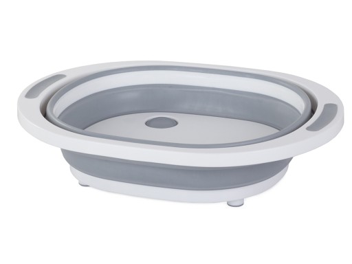 Przedstawiony produkt świetnie sprawdzi się w każdym gospodarstwie domowym. Składana miska jest to idealne rozwiązanie gdy brakuje nam miejsca w jednokomorowym zlewie lub gdy potrzebujemy umyć owoce lub warzywa. Dzięki antypoślizgowym nóżkom, miska jest stabilna i nie przewraca się. Ociekacz błyskawicznie rozkładamy w przeciągu kilku sekund. Po złożeniu miski na płasko, zamienia się ona w bardzo wygodną deskę do krojenia.