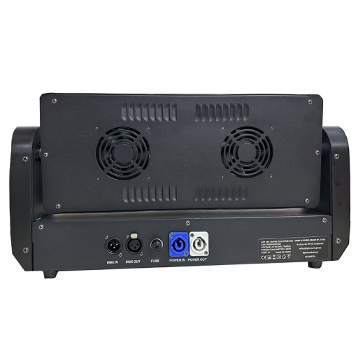 Komponenty blindera zostały zamknięte w solidnej, metalowej obudowie. Jej główną część stanowi panel świetlny operujący światłem w palecie barw RGB+CW (czerwony, zielony, niebieski, zimny biały). W jego skład wchodzi układ 864 diod LED (RGB) o mocy 0,3 wata, które są rozmieszczone w 12 sekcjach po 72 sztuki w górnej i dolnej części panelu świetlnego. Dodatkowe źródło światła stanowi poprzeczna listwa w centrum panelu świetlnego, na której znajduje się 96 diod LED (zimna biel) o mocy 1 wata rozmieszczonych w 12 sekcjach po 8 sztuk. Panel świetlny został zainstalowany między wytrzymałymi ramionami urządzenia, które zapewniają możliwość poruszania panelem świetlnym w płaszczyźnie pionowej (Tilt). Ruchy Tilt panelu świetlnego można odwrócić w dowolnym momencie za pomocą menu urządzenia, podobnie jak orientację wyświetlacza, gdy wymaga tego sytuacja!