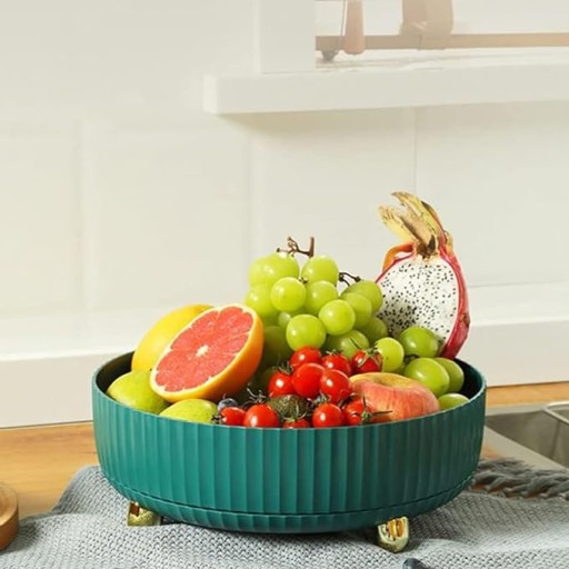 - Organizer w eleganckim, zielonym kolorze z nowoczesnym wykończeniem. Złote nóżki dodają mu wyjątkowego charakteru, czyniąc go stylowym dodatkiem do każdej kuchni. Dodatkowo, organizer posiada karbowane wykończenie, które nie tylko dodaje mu elegancji, ale także zwiększa jego wytrzymałość i stabilność. Ten żłobkowany wzór sprawia, że produkt jest wyjątkowy i przyciąga wzrok, jednocześnie zapewniając lepszą chwytność.