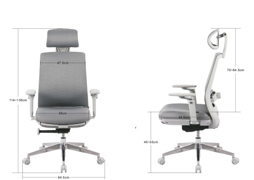 - Oparcie o wysokości od 70 do 84,5cm i szerokości 47,5cm