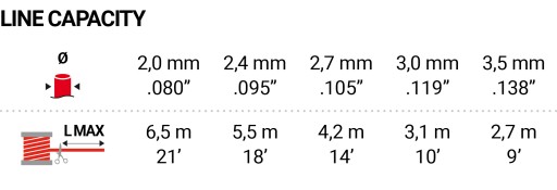 - Systemy: Łatwe nawijanie żyłki | Wiele przekrojów żyłki