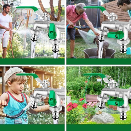🚰【Zastosowanie】 Podwójny kran wylotowy Premium może być stosowany w ogrodzie, przemyśle i gospodarstwie domowym, nawadnianiu, pralce, myjni samochodowej, wężu ogrodowym, konewce, beczce na deszczówkę itp. Nasz kran zewnętrzny zapewnia bezpieczeństwo nie tylko na zewnątrz! Idealny również do podłączania pralek lub przepływowych podgrzewaczy wody.
