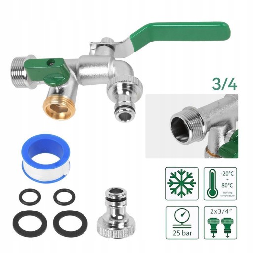 🚰【Łatwa instalacja】Uniwersalny kran z podwójnym wylotem Dołączony adapter może być używany do połączeń 3/4 cala i zapewnia płynne przejście do kranu ogrodowego 3/4 cala. Instalacja tego podwójnego kranu ogrodowego jest bardzo prosta i nie wymaga specjalnych narzędzi.