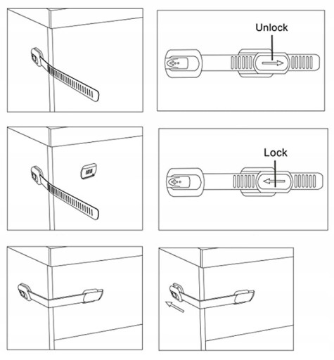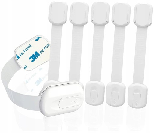 SIPO zestaw 6 sztuk zabezpieczeń do szaf, szuflad z możliwością regulacji długości i system zamykania na zatrzask który zapewni szybki dostęp dorosłym ale zabezpieczy przed otwarciem przez małe dzieci.