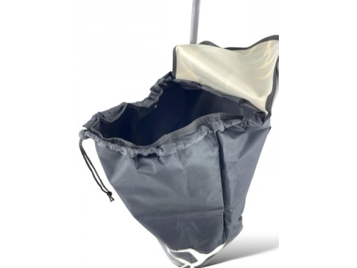 Torbę łączy się ze stelażem przez nałożenie jej od góry przez kieszeń znadującą się z tyłu torby. Dzięki temu nie ma możliwości, aby torba spadła z wózka w czasie zakupów.