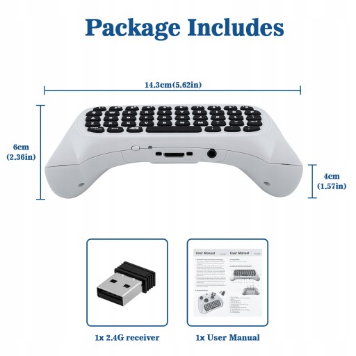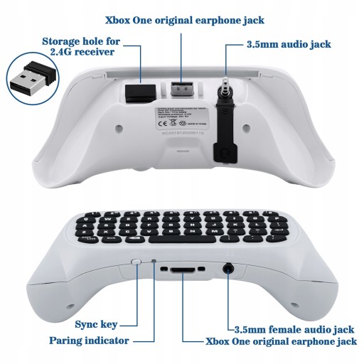 -Łatwy w użyciu. Po prostu podłącz klawiaturę do kontrolera bezprzewodowego Xbox One Slim / Series S / Series X i włóż odbiornik 2.4G do dowolnego interfejsu USB konsoli. Następnie możesz rozmawiać z graczami online, gdy lubisz grę.