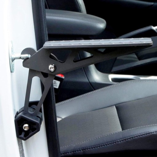 wystarczy ustawić kąt podparcia, aby utrzymać podnóżek prosto i stabilnie w przednich i tylnych drzwiach. Również składany dla lepszego transportu i uporządkowanego przechowywania.