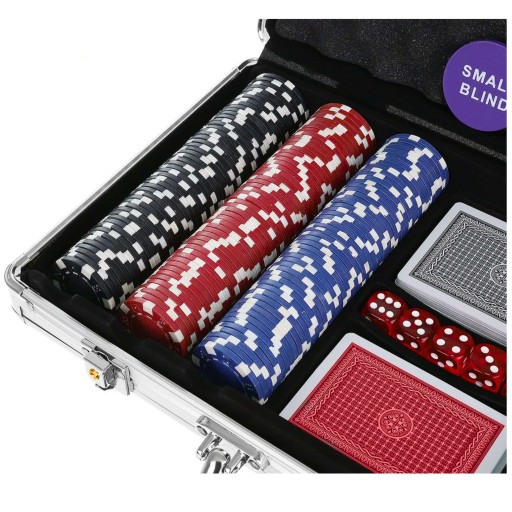 Fantastyczny kompletny zestaw do gry w Texas hold'em poker i inne gry karciane. W zestawie znajdziesz wszystko czego potrzebujesz by zagrać. Żetony są odpowiedniej wagi oraz wykonane z tworzywa z metalowym krążkiem w środku nadają się do pokazów krupierskich, gry w pokera texas holdem, ruletki i innych.