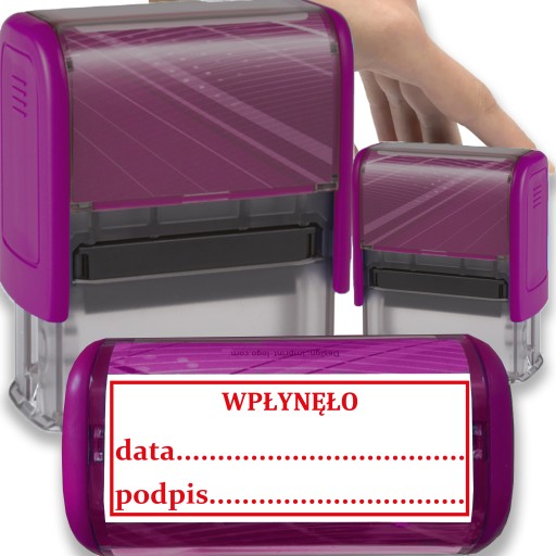✍️1 szt pieczątki w fioletowej obudowie "WPŁYNĘŁO"