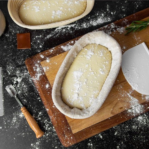 MLIA owalny okrągły Banneton kosz do sprawdzania zakwasu naturalny rattanowy kosz wkładka do pieczenia chleba zawiera wkładkę z tkaniny, skrobak do ciasta