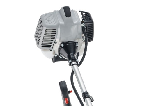 Elastyczność pracy dzięki wymiennej głowicy tnącej: głowicę żyłkową o szerokości cięcia 41 cm zastępuje w mgnieniu oka dołączony do zestawu metalowy nóż o szerokości roboczej - dla łatwego wykoszenia zarośla i dzikich roślin! Niewielka waga wynosząca zaledwie 7,7 kg oraz łatwa obsługa z ergonomicznym uchwytem typu bike zapewniają wydajną pracę i szybkie rezultaty koszenia w dzikim terenie, jak również przy ogrodzeniach i ścianach, a zwłaszcza na zboczach. Lekka, wytrzymała rura trzonu wykonana z aluminium. Dzięki automatyce impulsowej możesz łatwo ustawić optymalną długość nici podczas koszenia - po prostu uderz głowicą żyłkową o ziemię (nie wolno tego robić podczas założonego noża do koszenia!).