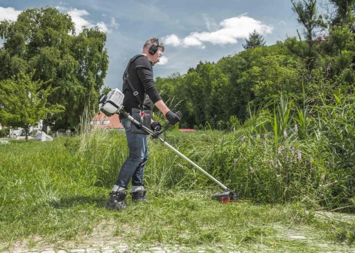 Niska waga, regulowana kierownica typu bike i wygodna funkcja regulacji żyłki - automatyka impulsowa - dla zawsze optymalnej długości żyłki. Wszystkie te cechy zapewniają, że kosa jest bardzo bezpieczna i łatwa w użyciu. Ponadto dzięki pasowi nośnemu praca jest wygodna i ergonomiczna.