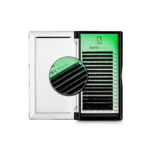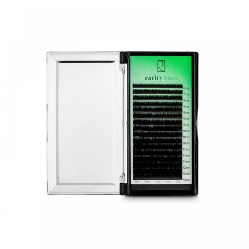 Rzęsy Rarity to niesamowita wygoda dla każdej stylistki. Gęsto tkane rzęsy o wysokiej porowatości w wielu wariantach sprawią, że Twoja praca stanie się łatwiejsza. W kasetce znajdziesz 16 (12 w skręcie L,M,R) jasnych, podfoliowanych pasków rzęs Rarity (w kasetkach że skrętem M i L znajduje się 12 pasków). Rarity Black są dostępne w różnych wariantach. Dzięki temu jeszcze łatwiej będzie Ci dopasować je do kształtu oka i oczekiwań klientki.